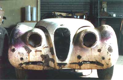 Jaguar XK120, white front view.