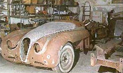 1951 Jaguar XK120 in workshop.
