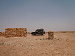 We turned off the tarmac at Bouarfa and made a long challenging desert crossing on a rough, ill-surfaced trail. The terrain was desolate and the trail alternated between sharp shards of rock and billowing sand.  It was bumpy, dusty and HOT... and I reminded Raymond that this is what we had come for. There were a number of confusing breaks in the trail where we would stop, check our compass, maps and GPS position.