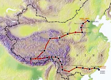 Tibet newsletter 1 Everest Tibet newsletter 2 Yunnan Tibet newsletter 3 Guillin Tibet newsletter 1 - China and into Tibet Shigatse and Everest - May 2004 We have driven some 3000 miles from the Great Wall at Beijing to Shigatse, the second capital of Tibet. Our drive has taken us on good road and 4x4 tracks. We have visited Buddhist shrines, Quin