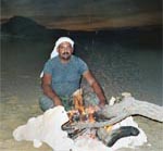 At dusk Atif made a fire, Raymond sliced vegetables with his