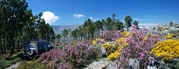 Further south we came to Pomarinho, a small campsite in a beautiful wild garden surrounded by flowers, shrubs and sunshine. We settled in and set up our two tents. Next day we started early to drive an amazing trail up into the high hills marking the Spanish border.