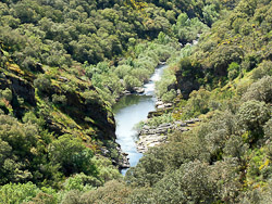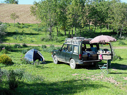 That night we camped ‘wild’, slightly to Raymond’s anxiety (“Have we got permission…?”) at a splendid site in a field of wild peonies just below a small natural lake. It was far from anywhere in an agricultural haven of small, flower decked grazing land. The track led down to the river Douro, lost in a deep canyon bounding the Spanish border on the steep walls to the east. An impenetrable natural boundary.