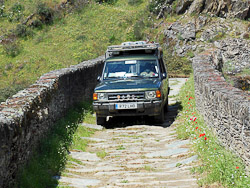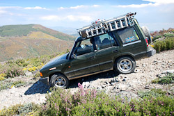 We hit the ridge that divides Spain and Portugal and drove along the border with a wheel in each country. We encountered some very difficult ascents on loose shale peppered with football sized rocks. Some of these slopes were at least 30%, some steeper still. Raymond’s navigating skill are superb, he can find these lost, abandoned routes.