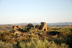 In the morning we drove down to the gorge where I saw an eagle swoop up to his eyrie on the cliff and deposit a fish into the talons of his mate. Overhead, vultures circled and buzzards scoured the meadows for voles.