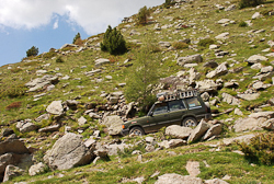 We returned down to Espot and took refuge in a small hotel on the market square. Next day we left early and had a terrific drive up to 7,800ft, then down to a river crossing. Here we stopped for our Sunday lunch of soup, crisp bread and tinned mackerel fillets. Later we encountered more horses and several cows, their bells ringing rhythmically as they grazed the young grass. The rock-strewn track was scarred with deep ruts. A Land Rover is essential for this terrain.