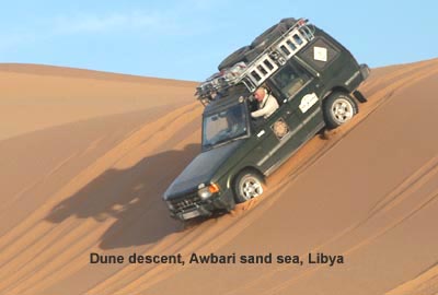 ravine. Down now to 1st gear in low ratio, the Land Rover scrambled